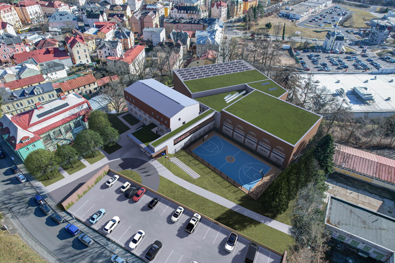 Nové městské sportovní haly s lezeckou stěnou a boulderem